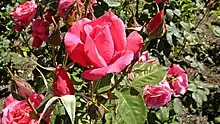 McGredy's early goals in rose breeding were the development of healthy, vigorous roses that would meet the growing demand for distinctive roses, both in the United Kingdom and the United States. By the 1960s he was becoming more innovative, creating new vibrantly coloured hybrid tea and floribunda roses. In 1962, McGredy used the hybrid tea, Rosa 'Paddy McGredy' and floribunda rose, Rosa 'Prima Ballerina', to develop a new electric pink hybrid tea rose.[1] That year, the Mullard Electronics Company in the UK offered McGredy the unprecedented fee of £10,000 ($24,000) for a new rose cultivar to be named for the company. The company requested a future award-winner, a "world-beater", according to McGredy. The new electric pink rose was chosen to bear the Mullard name and was introduced in Europe as 'Mullard Jubilee' in 1970. The new cultivar was also introduced into Australia in 1970 as 'Electron'.[9]