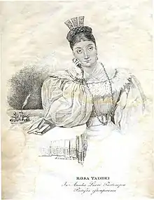 Although she considered herself a Neapolitan, Taddei may have been born in Trento or Corato. She was the daughter of Francesco Taddei; her father, mother and brother Luigi were all actors. She was considered one of the most beautiful and talented tragic actors of her day.[1] Taddei was best known as an "improvisatrice" or improvisational poet. She was a distinguished member of the Accademia degli Arcadi in Rome,[2] where she was known as Licori Partenopea. In 1832, she married Vincenzo Mozzidolfi.[1]