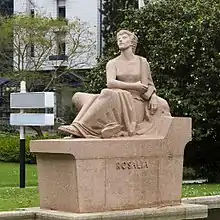 Editoria Crisálida, in 2008, published an anthology of Rosalía's Galician poems in Portuguese, translated by Andityas Soares de Moura.[54] There is a statue in her honor in the Galicia Square in the city of Porto, Portugal, by the sculptor Barata Feyo (September 1954).