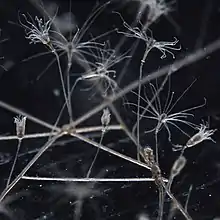 Rosalindidae are hydrozoans that are characterized by their ability to form colonies of polyps and attach to various surfaces, such as seaweed and shells, in the ocean. Rosalindidae are classified as invertebrates. They are considered epibionts, which rely on other invertebrates to live and develop.[2] Although hydroids like Rosalindidae typically live on hard substrates and among coral rubble, as well as colonize scleractinia, researchers have found Rosalindidae growing on larger animal hosts such as Cladocarpus paradiseus hydroids.[3] Rosalindidae form monomorphic colonies (monomorphism) in contrast to the polymorphic colonies (polymorphism) that characterize other hydrozoan families.[4]