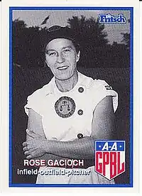 Rose M. Gacioch (/ˈɡeɪsɒtʃ/; August 31, 1915 – September 9, 2004) was a right fielder and pitcher who played from 1944 through 1954 in the All-American Girls Professional Baseball League.[1] Listed at 5 ft 6 in (1.68 m), 160 lb, Gacioch batted and threw right-handed. She had one of the most successful careers in AAGPBL history and possibly the most well-rounded of any female player. She was of Polish descent.[2]
