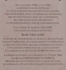 Memorial plaque at the Galerie nationale du Jeu de Paume