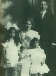 Her parents' marriage was an inspiration for Rosebud's ability to cross cultural bridges.[3] Chauncey taught her and her sisters Chauncina[4] and Evelyn[5] in Lakota tradition. On occasion, elderly Indians would visit the grounds of the Indian School and tell stories in the Lakota language. Chauncey would have Rosebud listen, even though she could not understand a word, and later he would retell the stories in English. Chauncey chose to send his daughters to the Rapid City public schools for their academic orientation, instead of the Indian School which focused on vocational courses in agriculture, blacksmithing and domestic arts. Rosebud enjoyed the Indian School's library and programs.[6] Chauncey spent many hours with his children telling the tales he was told by his grandmother and grandfather.[7]