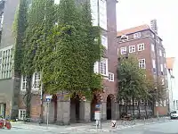 The National Romantic buildings at No. 15-17 is an extension designed by Henning Hansen to the YMCA's headquarters on Gothersgade. The original building was designed by Jens Christian Kofoed and inaugurated on the YMCA's 22-years anniversary on 17 September 1900. Henning Hansen expanded the building with the Rosenborggade Wing in two phases in 1916-1918 and 1924. The buildings later housed the University of Copenhagen's Department of Political Science and was then known as the Rosenborg Annex.[4]