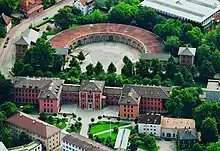 The brine pump house is one of the few monuments in the city which recall time from 1810 to 1958 of Rosenheim's brine industry.[18] As part of the National Exposition salt makes history, the city renovated the historic listed building and set up an exhibition room about Rosenheim's brine history. Admission is only possible with city guides or by agreement with the Metropolitan Museum.