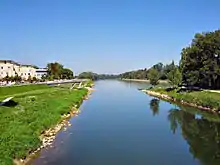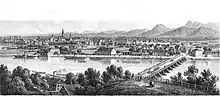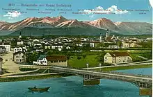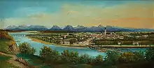 ![]() Aerial view of Rosenheim (foreground) and Simssee (background); in between from left to right the Inn river | |