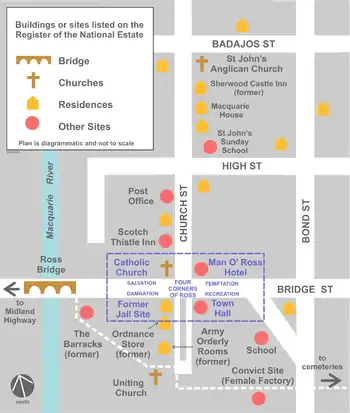 - ↑ "Ross Historic Town, Church St, Ross, TAS, Australia (Place ID 13218)". Australian Heritage Database. Australian Government.