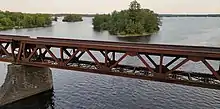 View of the railway bridge at the mouth of the Rouge River in Grenville-sur-la-Rouge in 2022