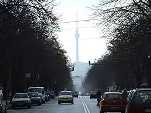 The Rousse TV Tower is a 204-metre-high TV tower built of reinforced concrete at Rousse, Bulgaria. Originally, the structure was constructed as a 206-metre-high TV tower with a cafe/restaurant on top and was the tallest one on the Balkan peninsula until 2001.[1] In the 1990s an additional antenna was added bringing the height to 210 metres. And, in March 2007, the antenna was reconstructed bringing its height to 204 metres.