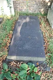 After nearly ten years of service to the Manx diocese, he died in London on 27 May 1887, aged 51.[1][2][3] He is buried against the east wall of Brompton Cemetery in London, south of the main east–west path.
