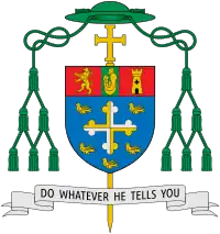 Pope Francis appointed Campbell as an auxiliary bishop for the Archdiocese of Washington on March 8, 2017.[2][3] On April 21, 2017, Campbell was consecrated as a bishop by Cardinal Wuerl.[4] Campbell's episcopal coat of arms contains a lion derived from McCarrick's coat of arms and a tower derived from Wuerl's coat of arms.[1]