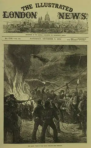 ![]() Rescuers working to save those on the Royal Adelaide near Portland. The Illustrated London News, 1872 | |