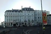 In 1856, another hotel had been built west of the Royal Albion on land previously occupied by Williams's Royal Hot and Cold Baths, an indoor bath-house.[14] The Lion Mansion Hotel was architecturally similar to the Royal Albion, and rose to four storeys.[7][15] It was later known as the Adelphi Hotel.[15] In 1963, it was taken over by the Royal Albion, and became physically linked to it as a west wing.[7]