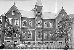 Construction of the school was approved in 1868, and after operating temporarily in a church basement, the new building was opened by Queen Victoria's son Prince Arthur on 11 February 1870.[1][nb 1] This was the first school built by the new Protestant Board of School Commissioners of Montreal,[2] and it was filled to its capacity of 600 students within 6 months.[3]