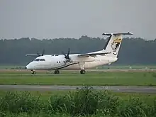 Royal Bengal Airline operated the Bombardier Dash 8-102A medium range turboprop airliner seating 37 passengers.[2]
