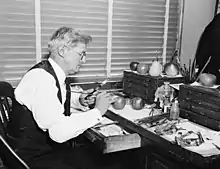 ![]() Steadman painting wax models of fruit in 1935 | |