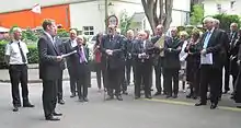 A Visite Royale is an annual ambulatory inspection by the Royal Court of one of the parishes of Jersey. Since 1803 the alternation of the visites has been fixed so that each parish is visited once every six years. The origin of the custom goes back to the jurisdiction of the viscount over the roads and paths of the Duchy of Normandy. The court inspects the parish accounts (although since modern practice is that accounts are professionally audited, this is a formality) and receives a report on policing and other matters from the connétable and chef de police. A panel of twelve voyeurs, made up of notable Parishioners nominated by the Connétable, is sworn in and leads the court on a circuit of roads around the parish, drawing the court's attention along the way to transgressions and encroachments that require judgment. The jurisdiction of the Visite Royale is to make "any order designed to ensure the rights of the public lawfully to use the public roads and pathways of the Island without obstruction, hinderance [sic] or inconvenience."[10] Judgment is given on the spot, although this may be an order that further investigations should take place and be reported to the Royal Court at a later date.[11]