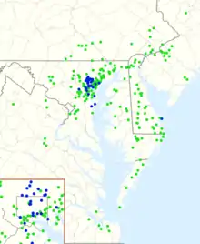 Royal Farms locations map as of January 2021. (Baltimore Metro expanded in inset)