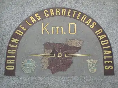 A plate on the ground in front of the building marks the kilometer 0 of the streets of Madrid and the Spanish roads.