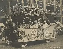 ![]() Rosarians march in the 2010 Starlight Parade in front of the official float with Queen Rachel Seeman | |