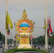 The Royal Staff exhibit on Ratchadamnoen Avenue in Bangkok showing the Royal Thai Regalia in honour of the 60th anniversary of King Bhumibol Adulyadej's ascension to the throne in 2006.