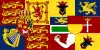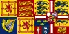 The Royal Standard defaced with a three-point label (with the second point charged with the Cross of St. George), quartered with the arms of Saxony.