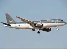 Royal Wings[3] (RW, Arabic: الأجنحة الملكية) was an airline based in Amman, Jordan. It was a Royal Jordanian Group Company and the charter arm of Royal Jordanian. Its main base was at Queen Alia International Airport (AMM), Amman with hubs also at Amman Civil Airport (ADJ), and King Hussein International Airport (AQJ).