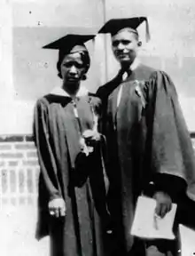 ![]() Photograph of Rubye M. Hibler and Ira Hall during their graduation from Langston University, Langston, OK, c. 1932. | |
