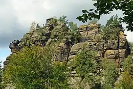 The Rudolfův kámen (also called Ostroh; German: Rudolfstein or Hoher Stein) is a rocky hill in the Elbe Sandstone Mountains in the Czech Republic, in the territory of Jetřichovice. It is located in the Bohemian Switzerland National Park and has an elevation of 484 m (1,588 ft) above sea level.