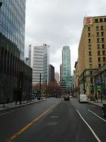 Square-Victoria–OACI metro station is located near the end of the street.