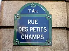 Rue des Petits-Champs is a street which runs through the 1st and 2nd arrondissement of Paris, France.