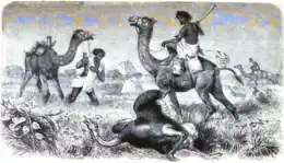 Three Rufaa hunt an ostrich, c. 1870