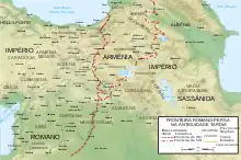 Byzantine emissaries returned to Justinian in September 530 with terms acceptable to Kavad. The emperor was ready to accept them, but when Rufinus returned to the court of Kavad I, the latter had been informed of the Byzantines' difficulties in dealing with the revolt of the Samaritans, which made him decline peace.[9] The emissary returned to Constantinople with the news.[5] In 531, after the Battle of Callinicum on April 19, Rufinus and Strategius were sent to the Persians seeking peace but were prevented in Edessa since the shah had sent his armies to Byzantine territory.[10][11] It is likely that Rufinus was among the ambassadors who were prevented by Justinian from crossing into Persia after the death of Kavad I (in September of that year), before Sassanid emissaries arrived to inform them officially about the rise of Khosrow I. Once the emperor received the news, Rufinus, Hermogenes, Alexander, and Thomas (according to Procopius), or Rufinus and Strategius (according to Malalas) were sent to negotiate with Khosrow.[12]
