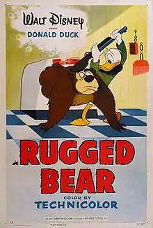 Rugged Bear is a 1953 American animated short film produced by Walt Disney Productions and released by RKO Radio Pictures.[1] The cartoon follows Humphrey the Bear (in his 2nd appearance) as he takes refuge in Donald Duck's cabin during hunting season by disguising himself as a bearskin rug. The film was directed by Jack Hannah and features the voices of Clarence Nash as Donald, Jimmy MacDonald as Humphrey, and an uncredited narrator.