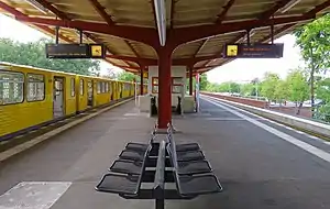 Ruhleben is a Berlin U-Bahn station, the western terminus of line U2. Named after the adjacent Ruhleben neighbourhood, it is located in the Westend district close to the border with Spandau.