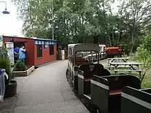 The RNUDC became part of the London Borough of Hillingdon in 1965.[3] Subsequent neglect of the lido as well as its entrance fees reduced visitor numbers. By the mid-1970s the Hunt locomotive was becoming unreliable and new locomotives were purchased from the manufacturer Severn Lamb in 1973 and 1975. An accident in 1978, which injured several people in a derailment due to speeding, resulted in closure of the railway, which soon began to display signs of dereliction.[2]