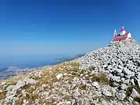 On 18 June 2005, a small prefabricated metal church was placed by a helicopter atop the summit of Mount Rumija by the 172nd Airborne Brigade of the Serbian and Montenegrin Army of Podgorica at the request of the Council Church of Podgorica, a dependent of the Orthodox Serb Metropolitan of Montenegro.[2][1][3] The metal building is known as the Orthodox Church of the Holy Trinity.[2] The symbolic action aimed at demonstrating the dominance of the Serbian Orthodox Church (SOC) over other religions and to reaffirm the Serbian character of Montenegro, the event also revealed the close links between Metropolitan Amfilohije and the army.[2] The SOC stated that a former Orthodox church existed in that location until 1571, which was destroyed by the Ottomans.[2][3] The SOC is against removal of the church.[2] In letters addressed to politicians, Amfilohije stated to Milo Đukanović that any removal would be an act of vandalism and Patriarch Pavle asked Svetozar Marović "not to destroy the church that the Turks destroyed in 1571".[2]