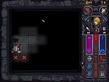 The game is a roguelike that has been compared to Dungelot for the fact that the player explores levels by tapping on dark tiles to reveal them, but also adds "extensive RPG elements".[4] The player can choose from six different classes and explores the level for keys as well as items.[4] Each level has 56 tiles and the player can only move to the next level down by finding the stairs.[5]