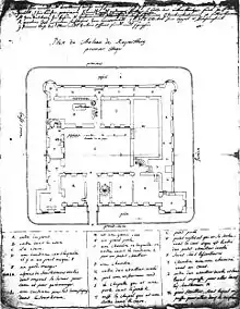 The arms were approved in 1955 by the Mainz Ministry of the Interior.[5] They replaced the old armorial bearing which bore the letters “BS” flanking a charge that does not seem to be identifiable. It looked like a rake or perhaps a harrow. Many explanations have been put forth (a tool of some kind, a village symbol, somebody's monogram, a charge from the arms borne by the old feudal lords, and still others). The current arms are meant to represent the Knights’ castle and, with the bunch of grapes, the local winegrowing.[6]