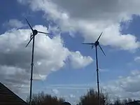 Two Iskra AT5-1 wind turbines[3] were installed in February 2005 which generate power with the excess sold to the National Grid whilst Solar Power is used for water heating along with a Biomass Boiler. Composting toilets have also been installed.