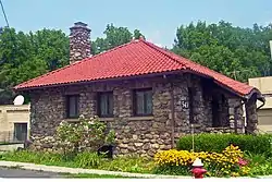 The Rushmore Memorial Library, also known as the Rushmore Memorial Building, is located at the junction of NY 32 and Weygant Hill Road in Highland Mills, New York, United States. It is a small Arts and Crafts-style stone building constructed in the 1920s with a donation from Charles E. Rushmore, a local resident for whom Mount Rushmore is also named.