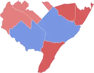 The 1st district is based in South Jersey and encompasses the inner Philadelphia suburbs including parts of Camden County along with parts of Burlington County and Gloucester County. The incumbent is Democrat Donald Norcross, who was re-elected with 64.4% of the vote in 2018.[1]