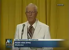 Russ Van Dyke moderating a 1987 presidential candidate debate[1]