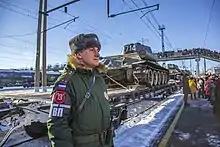 Russian military police in Murom maintains public order during the arrival of a train with T-34 tanks returned by Laos to the Russian army, January 2019 года[1]