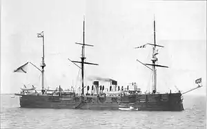 The Russian cruiser Minin (Russian: Минин) was an armored cruiser built for the Imperial Russian Navy during the 1860s and 1870s. She was renamed Ladoga in 1909 when converted to a minelayer. The ship was sunk in 1915 when she struck a mine laid by a German submarine in the Baltic Sea.
