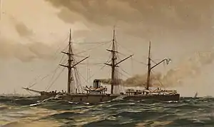 The Russian ironclad Kreml (Russian: Кремль) was the third and last Pervenets-class broadside ironclad built for the Imperial Russian Navy during the mid-1860s. She joined the Baltic Fleet upon completion and accidentally sank a Russian frigate in 1869. The ship was assigned to the Gunnery Training Detachment in 1870 and was frequently rearmed. Kreml sank in shallow water after a storm in 1885; she was refloated and returned to service. The ship was placed in reserve in 1904 and disarmed the following year before being sold for scrap in 1908.