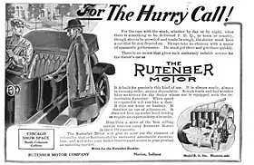 The Rutenber Motor Company was established as the Rutenber Manufacturing Company in Chicago, Illinois, United States, to manufacture a four-cylinder engine to the design of Edwin Rutenber.