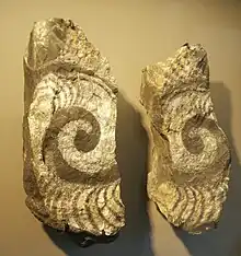Rutoceratidae is a family of prototypical nautilids, derived probably from either Brevicoceratidae or Acleistoceratidae of the order Oncocerida early in the Devonian. Rutoceratidae comprise a family within the oncocerid superfamily Tainocerataceae[1] They are generally characterized by cyrtoconic and gyroconic shells, commonly with spines, nodes, or frills, although some included genera are almost orthoconic, and a commonly empty, tubular ventral siphuncle.[1][2]