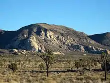 Ryan Mountain is a 5,456-foot-high (1,663 m) mountain in Joshua Tree National Park. The trail to the peak is a strenuous hike, ascending 1,050 feet (320 m) in 1.5 miles (2.4 km).[1] Ryan Mountain is a popular attraction in the park, because it leads to panoramic views of Pinto Basin, Lost Horse Valley, Queen Valley, and Pleasant Valley.[2] It is one of the locations in Joshua Tree that features abundant lichen populations.[3] It is named after J.D. Ryan, a wealthy rancher and early mining operator in the park.[4]