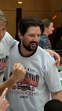In 2012, Petrik guided the Flames back into the finals with a fourth-place finish and a 15–7 record. They went on to win through to the WSBL Grand Final to become the first Rockingham team (men or women) to reach a grand final.[6][7] In the championship decider, the Flames were outclassed by the South West Slammers, losing 85–48.[8] For the season, Petrik was named the WSBL Coach of the Year.[9] In 2013, he guided the Flames to a semi-final appearance behind a second-place 16–6 regular season.